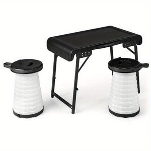 ✔ All-in-One Set – Includes 1 foldable table + 2 retractable LED stools