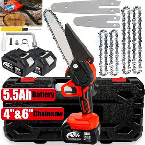 Take your woodworking and cutting tasks to the next level with this 4-inch & 6-inch cordless electric mini chainsaw. Designed for efficiency, power, and convenience, this 48V handheld chainsaw offers fast, smooth, and precise cutting for various applications, including pruning, branch trimming, firewood cutting, and DIY woodworking projects.