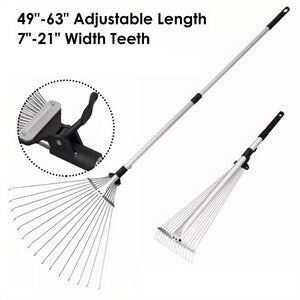 Keep your lawn and garden tidy with this 63-inch expandable garden leaf rake. Designed for efficient yard cleanup, this adjustable stainless steel rake expands and contracts to suit different tasks, from wide-area leaf collection to precise garden maintenance.