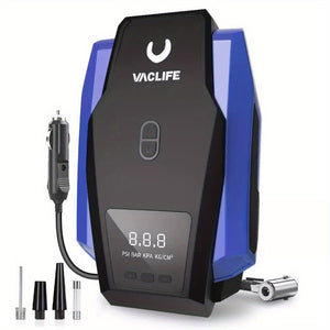 Keep your tires road-ready with this heavy-duty 12V car tire inflator, a portable electric air compressor designed for fast, reliable inflation. Powered by a dual-cylinder motor, this pump delivers up to 150 PSI and a high airflow of 70L/min, inflating a standard car tire (e.g., 205/55R16) from 0 to 35 PSI in just 1.5 minutes. Constructed with a durable metal body and rubber feet for stability, it connects via a 11.5-ft cord to your car’s 12V cigarette lighter, paired with a 10-ft air hose for a total 21.5-ft reach. The digital pressure gauge offers precise readings in PSI, BAR, or KPA, with an auto-shutoff feature to prevent over-inflation. Equipped with an LED light for nighttime use and three nozzle adapters, this 4.5-lb compressor is perfect for cars, trucks, motorcycles, bikes, and inflatables, making it an essential tool for emergencies or routine maintenance.