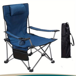 🏕️ Oversized Camping Chair – Heavy Duty Folding Chair w/ Cup Holder & Pillow 🏕️